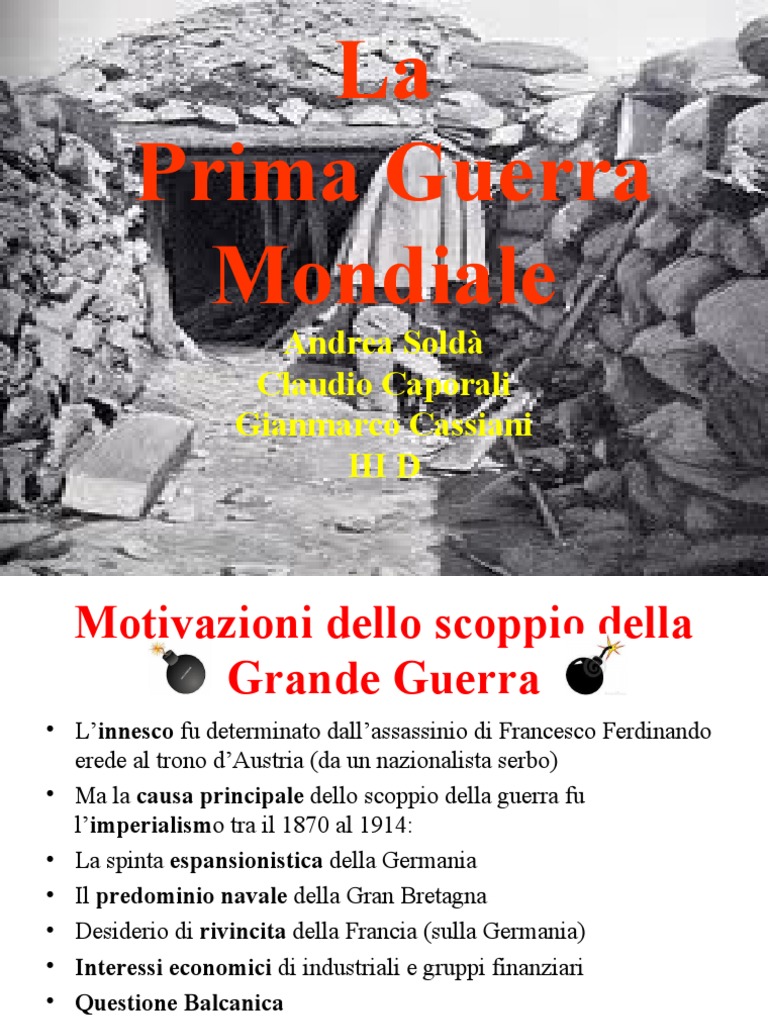 La prima guerra mondiale from image.slidesharecdn.com Il vero motivo del comportamento del governo italiano fu il fatto che l'italia, per entrare in guerra, si aspettava una ricompensa: Nella prima guerra mondiale l'italia, alleata con la triplice alleanza, si trova a combattere contro l'austria a sul fronte meridionale, ovvero a nord dell'italia. L'assassinio dell'arciduca francesco ferdinando, erede al trono d'austria, fu l'atto che destabilizzò i precari nel 1914 l'italia rimase neutrale perché il patto della triplice alleanza con austria e germania era difensiva cioè prevedeva l'intervento italiano solo in caso di aggressione. Infatti l'austria attacca la serbia, senza consultare l'italia prima di intraprendere l'azione. Da in alto a sinistra in senso orario: Mitraglieri austroungarici sulle montagne tirolesi; Dopo il fallimento delle trattative con l'austria (cui l'italia chiede compensazioni territoriali per entrare in guerra a fianca degli imperi centrali) il governo italiano stipula segretamente e all'insaputa del parlamento il. L'esercito italiano è costretto a ritirarsi fino al piave.